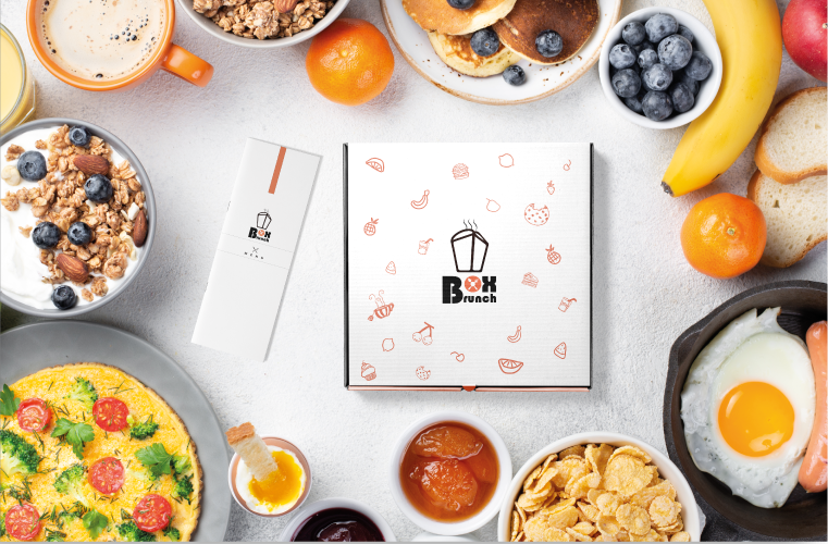 Objectif : Pour cette entreprise qui confectionne et vend des brunch en format box; Création de l’identité visuelle Logo, packaging et flyers.