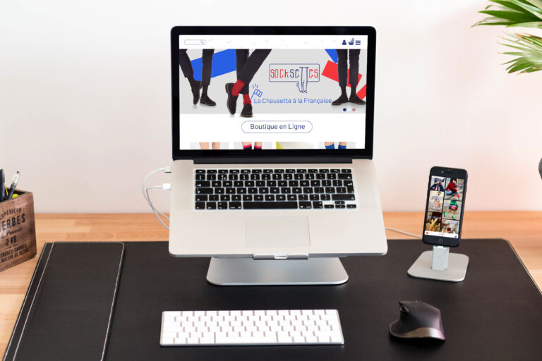 Objectif : Socksettes est une marque de chaussettes fièrement fabriquées en France. J’ai travaillé avec passion pour concevoir un logo unique, représentant les valeurs de la marque : la rigueur, la qualité et la tradition made in France. Les couleurs choisies rappellent le drapeau français. La déclinaison de l’identité visuelle se retrouve dans tous les supports de communication, du packaging aux supports promotionnels, en passant par le site web responsive.